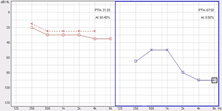 <span style="font-size:16px;"> 純音聽閾測試是聽力學所有測試項目中最基本的一項內容,包括氣導(AC)、骨導(BC)、最舒適閾(MCL)與不舒適閾(UCL)測試。測試結果能夠直接反映患者雙耳的聽力損失程度、性質與動態范圍,還能夠間接反映患者的患病位置、病因與助聽后效果。</span></p><p><span style="font-size:16px;"> 一般地,整個檢查控制在10分鐘左右,既能全面做完檢查,又不至患者疲憊而影響主觀反應。</span></p><p><span style="font-size:16px;"> 純音聽閾測試是最考驗聽力學工作者實際工作能力的一項基本內容:</span></p><p><span style="font-size:16px;"> 1、若患者曾長期暴露于噪聲中,且無其它致聾因素,很可能在3 kHz或6 kHz出現明顯的下降,聽力曲線呈現“V”字形,所以除了常規的倍頻程頻率外,還要加測這兩個頻率,否則就犧牲了多通道助聽器的意義;</span></p><p><span style="font-size:16px;"> 除了有過噪聲接觸史的患者需要加測半倍頻程外,涉及聲場助聽聽閾評估、賠償等情況都需要加測半倍頻程。</span></p><p><span style="font-size:16px;"> 耳鳴困擾的患者,注意避免與耳鳴聲類似的純音,若還用純音作為刺激聲,患者就會分辨不清,出現假陽性或假陰性。所以,測試者要換成囀音,既有別于耳鳴聲,又具有頻率特異性。</span></p><p><span style="font-size:16px;"> 2、不舒適閾反映患者對大聲的忍耐力,不舒適閾與氣導的差值能顯示患者的動態范圍,指導驗配師調節助聽器的最大輸出。</span></p><p><span style="font-size:16px;"> 不舒適閾測試頻率是否越多越好呢?非也。測得頻率過多,一會引起患者疲勞或不適,二是沒必要,大多數助聽器的最大輸出是一個整體,不能像調增益和壓縮那樣分通道,所以測多了并無好處,一般測0.5、1、2、4 kHz。</span></p><p><span style="font-size:16px;"> 3、如果兩側聽力有明顯差異,此時就要準備好掩蔽了,分為氣導掩蔽與骨導掩蔽。</span></p><p><span style="font-size:16px;"> (1)氣導掩蔽的判斷有兩個原則,只要符合其中一個原則,就需要重新測差耳氣導。具體做法是:</span></p><p><span style="font-size:16px;"> 測試完雙耳氣導,若發現某一頻率差耳氣導閾值比好耳氣導閾值多40 dB以上就要懷疑有可能是好耳偷聽的,需要給好耳氣導加掩蔽聲;</span></p><p><span style="font-size:16px;"> 測試完雙耳氣導與好耳骨導,若發現某一頻率差耳氣導閾值比好耳骨導閾值多40 dB以上就要懷疑有可能是好耳偷聽的,需要給好耳氣導加掩蔽聲。</span></p><p><span style="font-size:16px;"> 下面為未掩蔽的聽力圖:</span></p><center><span style="font-size:16px;"><img alt="" src="/upfiles/201810160133207570.png" width="440" height="220" /></span></center><p></p><p><span style="font-size:16px;"> 下圖為掩蔽后的左耳真實氣導值:</span></p><center><span style="font-size:16px;"><img alt="" src="/upfiles/201810160133289538.png" width="440" height="220" /></span></center><p></p><p><span style="font-size:16px;"> (2)骨導掩蔽的判斷原則:</span></p><p><span style="font-size:16px;"> 測試完雙耳氣導與好耳骨導,若發現某一頻率差耳氣導閾值比好耳骨導閾值大于等于15 dB就必須予以掩蔽,重測骨導。下圖為右耳氣導加掩蔽后左耳骨導的真實值:</span></p><center><span style="font-size:16px;"><img alt="" src="/upfiles/201810160133368026.png" width="440" height="220" /></span></center><p></p><p><span style="font-size:16px;"> 注意:</span></p><p><span style="font-size:16px;"> 1)掩蔽的規則要按順序適用;</span></p><p><span style="font-size:16px;"> 2)各頻率根據規則決定是否需要加掩蔽;</span></p><p><span style="font-size:16px;"> 3)很少需要掩蔽所有頻率,通常氣導掩蔽頻率不應超三個,骨導掩蔽頻率不應超兩個,否則受試者會疲憊不堪。</span></p><p><span style="font-size:16px;"> 醫院測聽的主要目的是診斷和鑒別聽力損失的性質和程度,驗配中心的主要目的是盡可能地幫助患者選擇并調試好助聽器。</span></p><p><span style="font-size:16px;"> 更多詳情請登錄m.zjqianhao.com</span></p>" />
