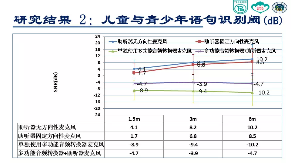 <br /><br /><br />環境噪聲對聽障者言語可懂度存在嚴重影響<br /><img src="/upfiles/201807200933345194.jpg" alt="" /><br />(感音神經性聾患者聽力圖)<br /><br /><br />在有噪聲的環境里,特別對于感音神經性聾患者來說非常困難,言語清晰度和可懂度會存在嚴重障礙。<br />在安靜環境或者信噪比為零的環境下,聽力正常人的表現基本接近 100%,說明聽力正常者的聽覺功能、抗噪功能是正常的。上圖綠色柱狀圖表示,伴隨著環境噪聲的增大,言語識別率遞減。<br /><br /><br /></span><p><span style="font-size:14px;">隨著與聲源距離的增加,強度迅速衰減,信噪比逐漸下降</span></p><p><span style="font-size:14px;"><img src="/upfiles/201807200933155202.jpg" alt="" /><br /></span></p><span style="font-size:14px;">已經實現的助聽輔助技術<br /><br /><br />FM 系統<br /><br /><br />數字無線配件:發射器、接收機數字信號傳輸<br /><br /><br />研究目的<br />本項課題主要是研究使用無線麥克風系統對聽障患者在噪聲條件下和遠距離環境下對言語識別能力改善的效果。<br /><br /><br />研究方法<br /><br /><br /><br /><br />助聽設備<br /><img src="/upfiles/201807200932488824.jpg" alt="" /><br /><br />測試材料<br /><br /><br /><br /><br />漢語普通話版噪聲下言語測試材料(Mandarin Hearing in Noise Test, MHINT)<br /><br /><br />成人測試材料<br /><br /><br />兒童測試材料<br /><br /><br />言語刺激聲<br /><br /><br />言語刺激聲分別來自受試者1.5m,3m和6m處<br /><br /><br />采用自適應的步驟來測試噪聲中的語句識別閾<br /><br /><br />環境噪聲<br /><br /><br />采用與測試材料本身頻譜接近的言語譜噪聲 (SSN)<br /><br /><br />噪聲強度為65 dB(A)<br /><br /><br /><br /><br />測試環境<br /><img src="/upfiles/201807200931496282.jpg" alt="" /><br /><br />??成人受試者<br /><img src="/upfiles/201807200931377495.jpg" alt="" /><br /><br />??程序設置<br /><br /><br />單獨使用助聽器麥克風(HA Mic Only):固定方向性<br /><br /><br />單獨使用迷你麥克風(Micro Mic Only)<br /><br /><br />同時使用助聽器麥克風和迷你麥克風(HA Mic+Micro Mic)<br /><br /><br />受試者距離言語信號揚聲器的距離<br /><br /><br />1.5m<br /><br /><br />3m<br /><br /><br />6m<br /><br /><br />隨機更換各種測試條件<br /><br /><br />兒童和青少年受試者<br /><br /><img src="/upfiles/201807200930455527.jpg" alt="" /><br />?程序設置<br /><br /><br />C1:單獨使用助聽器麥克風:全向性<br /><br /><br />C2:單獨使用助聽器麥克風:固定方向性<br /><br /><br />C3:單獨使用迷你麥克風<br /><br /><br />C4:同時使用助聽器麥克風和迷你麥克風<br /><br /><br />受試者距離言語信號揚聲器的距離<br /><br /><br />S1:1.5m<br /><br /><br />S2:3m<br /><br /><br />S3:6m<br /><br /><br />隨機更換各種測試條件<br /><br /><br />統計學分析<br /><br /><br />采用雙因素方差分析判斷受試者噪聲條件下言語識別閾是否受距離和程序設置的影響<br /><br /><br />分析距離對程序設置各水平的影響<br /><br /><br />分析程序設置對距離各水平的影響<br />研究結果<br />成人語句識別閾<br /><img src="/upfiles/201807200929474048.jpg" alt="" /><br /><br />?上圖中,藍色曲線表示助聽器麥克風打開的情況;綠色表示助聽器和迷你麥克風同時打開;紅色表示僅打開迷你麥克風。<br /><br /><br />我們可以看到,單獨使用助聽器麥克風情況下,言語識別閾從1.5m處的5.55 dB上升到6m處的13.11 dB。單獨使用迷你麥克風和使用迷你麥克風同時開啟助聽器麥克風這兩種情況下受試者言語識別閾隨距離變化不大。<br /><br /><br />在1.5m處單獨使用迷你麥克風比單獨使用助聽器麥克風信噪比可以獲得11dB的改善,同時這種改善會隨著距離的增加效果越來越明顯,在6m處可到20.6 dB。<br /><br /><br />兒童與青少年語句識別閾<br /><img src="/upfiles/201807200929214754.jpg" alt="" /><br /><br />??方向性麥克風的使用,隨著距離的增加,言語識別閾沒有明顯改善。<br />結論<br />單獨使用助聽器麥克風(全向性或方向性),伴隨距離增加,言語識別能力會顯著下降;<br /></span><p><span style="font-size:14px;">使用無線麥克風系統,言語識別能力不隨距離的改變而發生顯著改變,即可以顯著改善遠距離噪聲環境下言語識別能力。(內容來源網絡)</span></p><p><span style="font-size:14px;">聽覺有道助聽器品牌:http://m.zjqianhao.com/</span></p>" />
