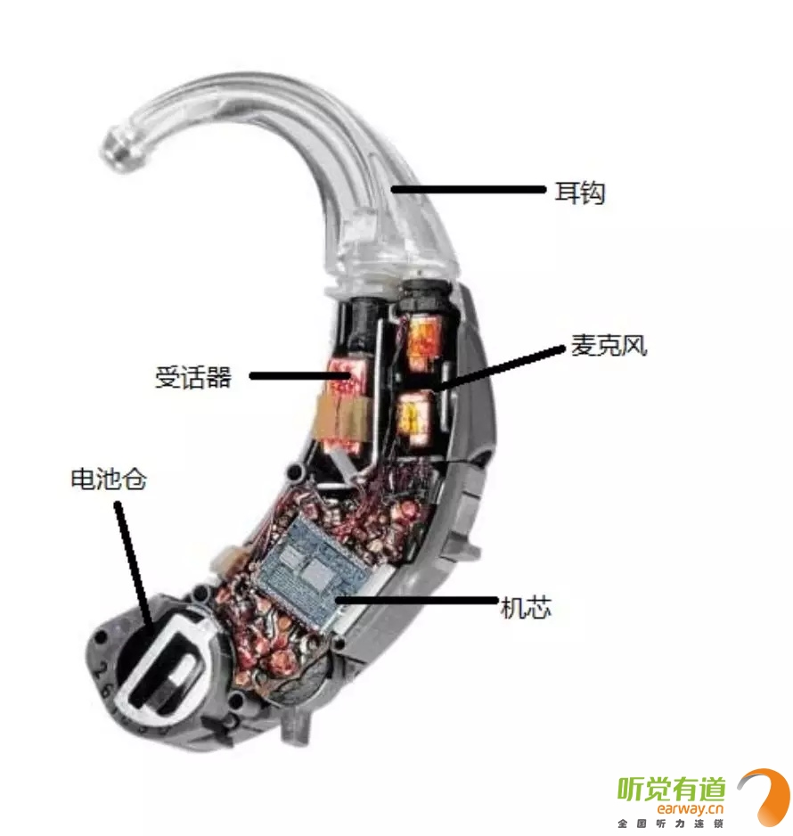 <span style="font-size:16px;"> 在助聽器發展過程中,出現過很多種助聽器,比如:盒式、眼鏡式、耳背式、耳甲腔式、耳道式、深耳道式等定制式助聽器。如今盒式助聽器、眼鏡式助聽器等幾乎已退出歷史舞臺,現在常見的助聽器有耳背式助聽器、定制式助聽器和RIE受話器外置式助聽器。</span></p><p style="text-align: center;"><span style="font-size:16px;"><img src="/upfiles/201808160127045435.jpg" width="640" alt="" /><br /></span></p><p><span style="font-size:16px;"> 接下來,我們將以耳背式助聽器為例,向您介紹助聽器的外部配件及內部構造!</span></p><p><span style="font-size:16px;"> 1、機身內部構造</span></p><p style="text-align: center;"><span style="font-size:16px;"><img src="/upfiles/201808160127276133.jpg" width="640" alt="" /><br /></span></p><p><span style="font-size:16px;"> 麥克風:獲取聲音并將聲音信號轉化為電信號。</span></p><p><span style="font-size:16px;"> 機芯:將電信號進行放大、處理,機芯包含放大器、音量調控電位器、微調電位器等。</span></p><p><span style="font-size:16px;"> 受話器:將電信號轉化為聲音信號,通過導聲管和耳模傳送給耳朵。耳背式助聽器和定制式助聽器的受話器都在機身內;RIE受話器外置式助聽器的受話器放置在耳道中。</span></p><p><span style="font-size:16px;"> 電池倉:用于安放電池來供電,使助聽器正常工作。</span></p><p><span style="font-size:16px;"> 2、電池</span></p><p><span style="font-size:16px;"> 電池放置于電池倉內,給予助聽器能量。市面上常見的助聽器電池分為4類:</span></p><p><span style="font-size:16px;"> A675:一般用于超大功率耳背式助聽器。</span></p><p><span style="font-size:16px;"> A13:一般用于標準耳背式或耳甲腔式助聽器。</span></p><p><span style="font-size:16px;"> A312:一般用于耳道式助聽器。</span></p><p><span style="font-size:16px;"> A10:一般用于深耳道式助聽器。</span></p><p><span style="font-size:16px;"> 電池大?。篈675>A13>A312>A10,電池越大,儲存能量越多。</span></p><p><span style="font-size:16px;"></span></p><p> 更多詳情請登錄m.zjqianhao.com。</p>" />