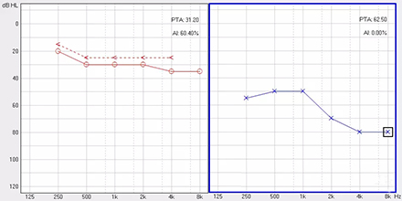 下圖為掩蔽后的左耳真實氣導(dǎo)值:
