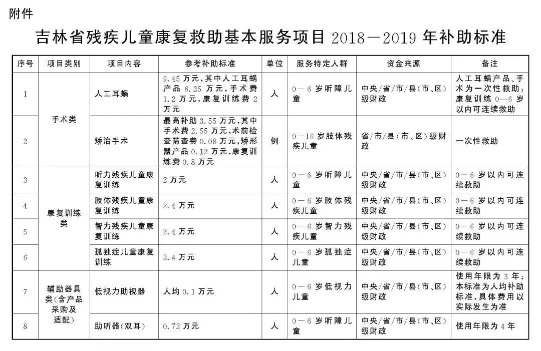 各市(州)人民政府,長白山管委會(huì),長春新區(qū)管委會(huì),各縣(市)人民政府,省政府各廳委辦、各直屬機(jī)構(gòu):</p><p> 為深入貫徹黨的十九大“發(fā)展殘疾人事業(yè),加強(qiáng)殘疾康復(fù)服務(wù)”的總體部署,全面落實(shí)《殘疾預(yù)防和殘疾人康復(fù)條例》和《國務(wù)院關(guān)于建立殘疾兒童康復(fù)救助制度的意見》(國發(fā)〔2018〕20號(hào))精神,不斷改善殘疾兒童康復(fù)狀況,促進(jìn)殘疾兒童全面發(fā)展,切實(shí)減輕殘疾兒童家庭負(fù)擔(dān),完善殘疾兒童康復(fù)救助社會(huì)保障體系,提出如下意見。</p><p> 一、總體要求</p><p> (一)指導(dǎo)思想。</p><p> 以習(xí)近平新時(shí)代中國特色社會(huì)主義思想為指導(dǎo),全面深入貫徹黨的十九大和十九屆二中、三中全會(huì)精神,認(rèn)真落實(shí)黨中央、國務(wù)院決策部署,統(tǒng)籌推進(jìn)“五位一體”總體布局和協(xié)調(diào)推進(jìn)“四個(gè)全面”戰(zhàn)略布局,堅(jiān)持以人民為中心的發(fā)展思想,牢固樹立新發(fā)展理念,按照兜底線、織密網(wǎng)、建機(jī)制的要求,著力保障殘疾兒童基本康復(fù)服務(wù)需求,努力實(shí)現(xiàn)殘疾兒童“人人享有康復(fù)服務(wù)”,使殘疾兒童家庭獲得感、幸福感、安全感更加充實(shí)、更有保障、更可持續(xù)。</p><p> (二)基本原則。</p><p> 堅(jiān)持制度銜接、應(yīng)救盡救。加強(qiáng)與基本醫(yī)療、臨時(shí)救助等社會(huì)保障制度的有效銜接,確保殘疾兒童家庭求助有門、救助及時(shí)。</p><p> 堅(jiān)持盡力而為、量力而行。堅(jiān)守底線、突出重點(diǎn)、完善制度、引導(dǎo)預(yù)期,著力滿足殘疾兒童基本康復(fù)服務(wù)需求。</p><p> 堅(jiān)持規(guī)范有序、公開公正。建立科學(xué)規(guī)范、便民高效的運(yùn)行機(jī)制,主動(dòng)接受群眾和社會(huì)監(jiān)督,做到公開透明、結(jié)果公正。</p><p> 堅(jiān)持政府主導(dǎo)、社會(huì)參與。更好發(fā)揮政府“保基本”作用,不斷推進(jìn)基本康復(fù)服務(wù)均等化;更好發(fā)揮社會(huì)力量作用,不斷擴(kuò)大康復(fù)服務(wù)供給,提高康復(fù)服務(wù)質(zhì)量。</p><p> (三)總體目標(biāo)。</p><p> 到2020年,建立與全面建成小康社會(huì)目標(biāo)相適應(yīng)的殘疾兒童康復(fù)救助制度體系,形成黨委領(lǐng)導(dǎo)、政府主導(dǎo)、殘聯(lián)牽頭、部門配合、社會(huì)參與的殘疾兒童康復(fù)救助工作格局,基本實(shí)現(xiàn)殘疾兒童應(yīng)救盡救。</p><p> 到2025年,殘疾兒童康復(fù)救助制度體系更加健全完善,殘疾兒童康復(fù)服務(wù)供給能力顯著增強(qiáng),服務(wù)質(zhì)量和保障水平明顯提高,殘疾兒童普遍享有基本康復(fù)服務(wù),健康成長、全面發(fā)展權(quán)益得到有效保障。</p><p> 二、制度內(nèi)容</p><p> (一)救助對(duì)象條件。</p><p> 救助對(duì)象應(yīng)同時(shí)具備以下條件:</p><p> 1.具有吉林省戶籍(或持有吉林省內(nèi)居住證),有康復(fù)需求的0-6歲視力、聽力、言語、肢體、智力等殘疾兒童和孤獨(dú)癥兒童。</p><p> 2.已辦理《中華人民共和國殘疾人證》,或持具有診斷資質(zhì)的縣級(jí)以上醫(yī)療機(jī)構(gòu)出具的醫(yī)學(xué)診斷的殘疾兒童。</p><p> (二)救助內(nèi)容和標(biāo)準(zhǔn)。</p><p> 救助內(nèi)容包括以減輕功能障礙、改善功能狀況、增強(qiáng)生活自理和社會(huì)參與能力為主要目的的手術(shù)、輔助器具配置和康復(fù)訓(xùn)練等。救助服務(wù)項(xiàng)目及補(bǔ)助標(biāo)準(zhǔn)依據(jù)年度《吉林省殘疾兒童康復(fù)救助基本服務(wù)項(xiàng)目補(bǔ)助標(biāo)準(zhǔn)》執(zhí)行。</p><p> 各市(州)、縣(市、區(qū))政府要依據(jù)本地財(cái)力狀況、保障對(duì)象數(shù)量、殘疾類別等,分類確定本地康復(fù)救助基本服務(wù)項(xiàng)目的經(jīng)費(fèi)補(bǔ)助標(biāo)準(zhǔn),可在省確定的項(xiàng)目和標(biāo)準(zhǔn)基礎(chǔ)上,根據(jù)本地實(shí)際增加殘疾兒童康復(fù)救助基本服務(wù)項(xiàng)目,擴(kuò)大殘疾兒童康復(fù)救助的年齡范圍,并建立項(xiàng)目和標(biāo)準(zhǔn)的動(dòng)態(tài)調(diào)整機(jī)制。</p><p> (三)工作流程。</p><p> 申請。殘疾兒童監(jiān)護(hù)人向殘疾兒童戶籍所在地(居住證發(fā)放地)縣級(jí)殘聯(lián)提出申請。監(jiān)護(hù)人也可委托他人、社會(huì)組織、社會(huì)救助經(jīng)辦機(jī)構(gòu)等代為申請。兒童福利機(jī)構(gòu)收留撫養(yǎng)的殘疾兒童由其所在兒童福利機(jī)構(gòu)代為申請。</p><p> 審核。縣級(jí)殘聯(lián)負(fù)責(zé)對(duì)殘疾兒童救助申請進(jìn)行審核。</p><p> 救助。殘疾兒童康復(fù)救助由定點(diǎn)康復(fù)機(jī)構(gòu)負(fù)責(zé)組織實(shí)施。定點(diǎn)康復(fù)機(jī)構(gòu)由省殘聯(lián)會(huì)同省衛(wèi)生健康、教育、民政等部門進(jìn)行評(píng)審,符合條件的確定為定點(diǎn)康復(fù)機(jī)構(gòu),并向社會(huì)公開,經(jīng)審核符合條件的殘疾兒童,可在戶籍所在地或居住地自主選擇定點(diǎn)康復(fù)機(jī)構(gòu)。定點(diǎn)康復(fù)機(jī)構(gòu)須對(duì)殘疾兒童進(jìn)行康復(fù)評(píng)估,并根據(jù)評(píng)估結(jié)果制定康復(fù)計(jì)劃。必要時(shí),由上一級(jí)殘聯(lián)組織和衛(w